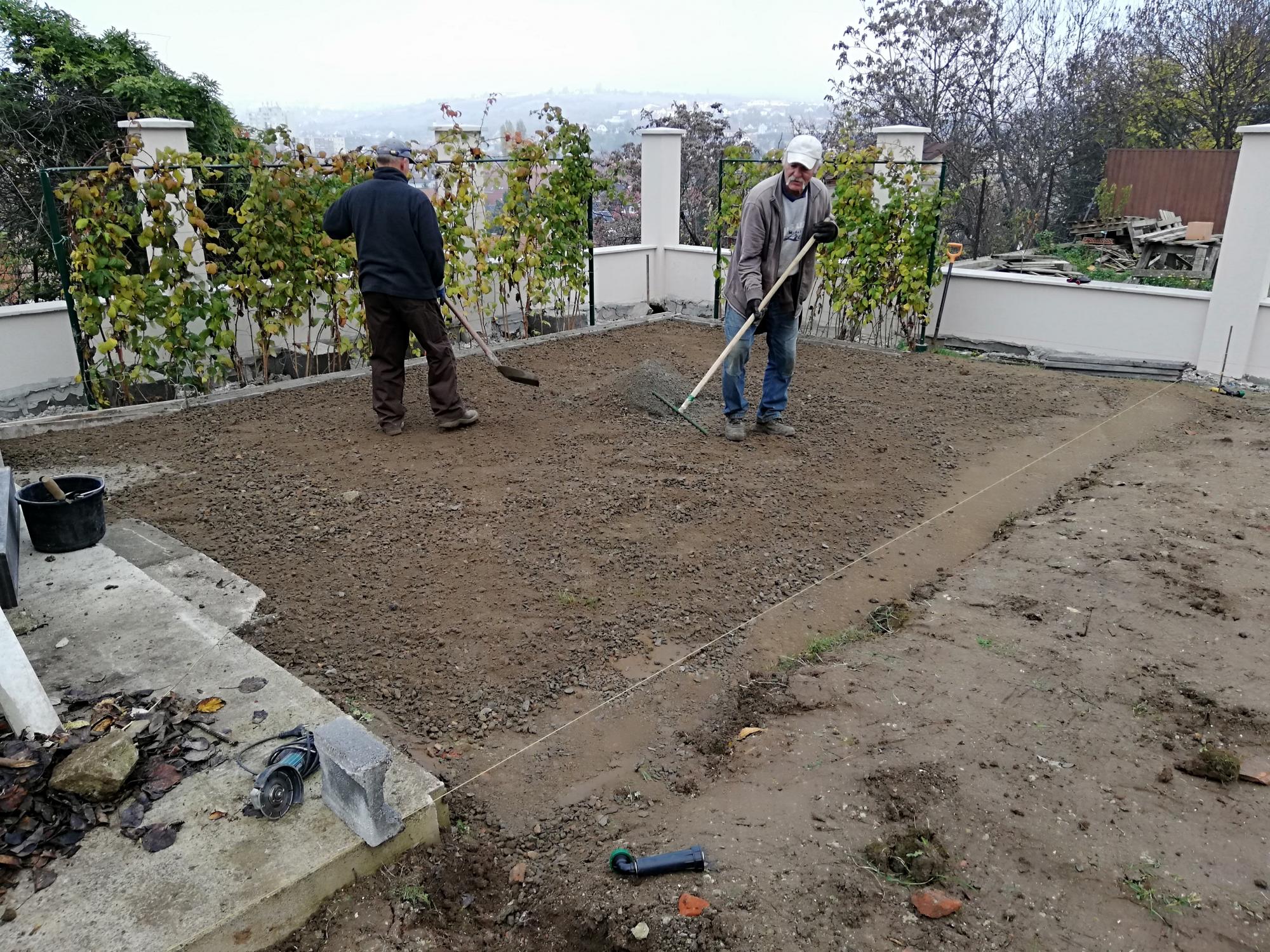 Az utóbbi években egyre több megkeresést kapunk térburkolásra, így gépparkunkat is ennek megfelelően bővítettük lap vibrátorokkal, teodolit szögmérő műszerrel, döngölő békával, kővágó gépekkel stb.